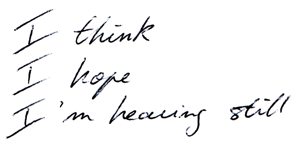 En tout, ce mois-ci, j’ai écrit six petites strophes indépendantes les unes des autres. Mais à la relecture, certaines se combinent plutôt bien. Nous voilà donc avec trois petits poèmes.